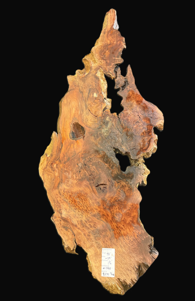 This redwood piece has a lot of different figuring with some burl pinning to add.  It can be used as an epoxy piece to make a one-of-a-kind table or add some hooks and there is a coat rack.