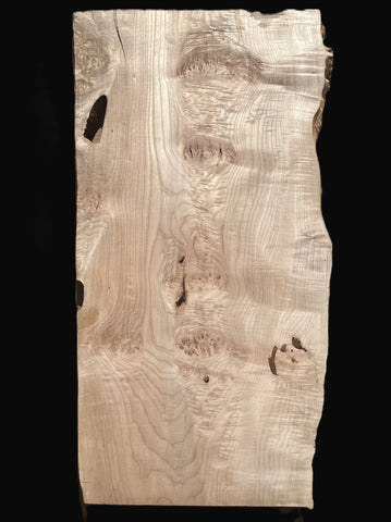 This beautifully figured piece of maple has curls forming around the burl clusters with the live edge left on it to maintain the natural beauty.