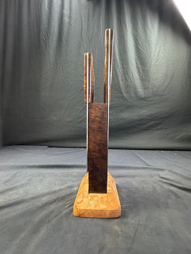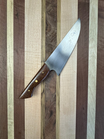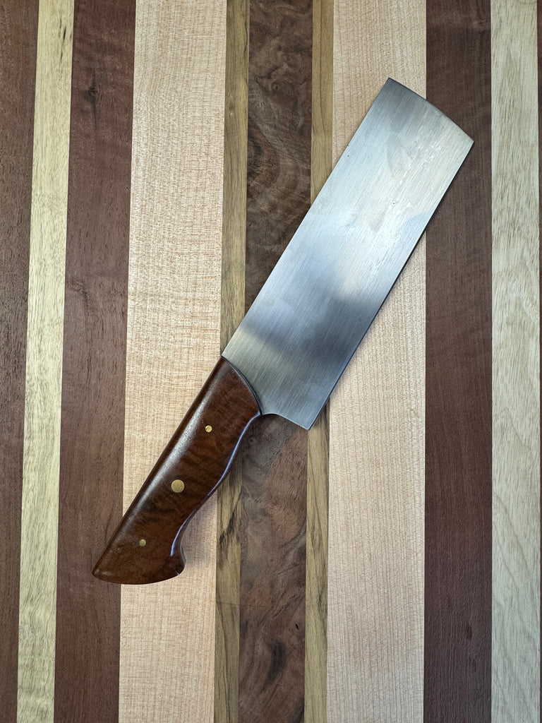 HANDLE MATERIAL: Custom curly Walnut, ergonomic grip, and durable rivets
