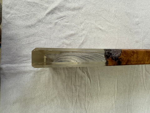 Elevate your dinning presentation with this exquisite Maple & Epoxy cheese & charcuterie board, a true masterpiece that seamlessly blends artistry and functionality. Custom-crafted in-house with instrument grade maple enhanced by the captivating clear epoxy design that adds a modern, artistic touch to your table.