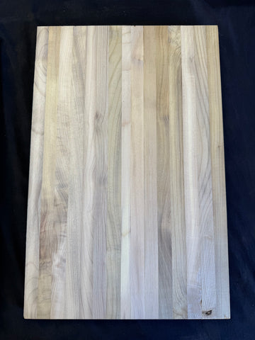 This is an unfinished myrtlewood glue up cutting board available for sale as is (unfinished DIY) or customized and finished as you choose. This piece is currently glued up, jointed and planed but not sanded. The Dimensions are currently (19 ⅝ x 12 ⅞ x 1 ¼) and may change slightly with customizations. Myrtle Wood is a very dense, hard, closed grain wood which makes it the perfect wood for a durable, long lasting, but still beautiful cutting board.